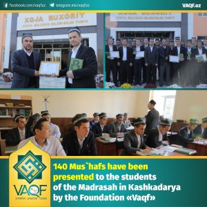 140 Mus`hafs have been presented to the students of the madrasah in Kashkadarya by the Foundation "Vaqf"