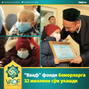 «Вақф» фонди бемор болаларнинг кўнглини шод этди