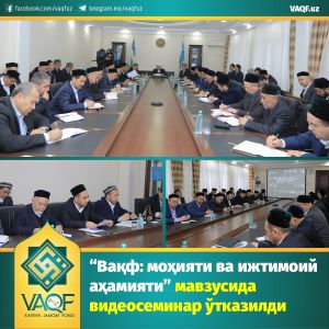 “Вақф: моҳияти ва ижтимоий аҳамияти” мавзусида видеосеминар ўтказилди