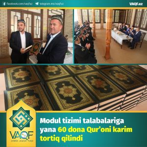 Modul tizimi talabalariga yana 60 dona Qur’oni karim tortiq qilindi