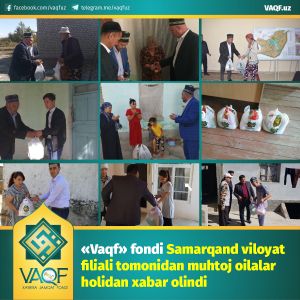 "Vaqf" fondi Samarqand viloyat filiali tomonidan muhtoj oilalar holidan xabar olindi