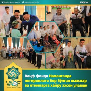 Vaqf fondi Namanganda nogironligi bor bo'lgan shaxslar va yetimlarga xayru ehson ulashdi
