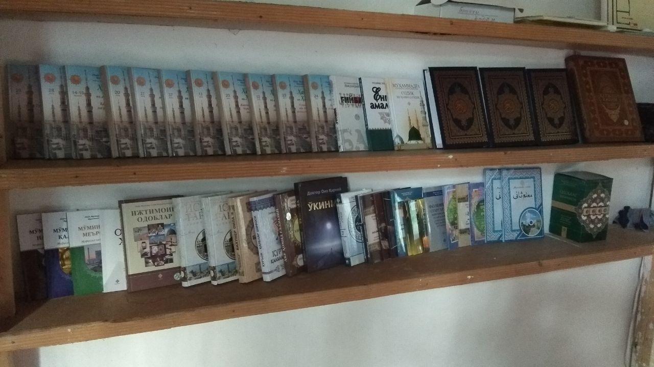 Masjidlarning har biriga yurtimizda nashr etilgan Qur’oni karim va “Men ham namoz o‘qiyman” kitoblari uch donadan, “Muallimi soniy” va “Odam ato va Momo havo” kitoblari ikki donadan, shayx Muhammad Sodiq Muhammad Yusuf hazratlarining qalamlariga mansub “Qur’oni karim ma’nolar tarjimasi”, “Odoblar xazinasi” to‘plami, “Muhammad sollallohu alayhi vasallamga sodiq Muhammad Sodiq”, “Baxtiyor oila”, “Ijtimoiy odoblar”, “Islom tarixi” to‘plami, “Amallar niyatga bog‘liq”, “Bozor va unga bog‘liq masalalar”, “Din nasihatdir”, “Folbinlik, sehrgarlik, jin chiqarish ishlarining haqiqati”, “Yengil amallar”, “Zikr ahlidan so‘rang” kitobining 2-qismi, “Hadis va hayot” kitobining 12 ta juzi, “Halol ochiq oydindir, harom ochiq oydindir”, “Mo‘minning me’roji”, “Mo‘minning najoti”, “Mo‘minning qalqoni”, “Mo‘minning umr safari”, “Ochiq xat” kitoblari bir donadan Alloh yo‘lida vaqf mulki qilib berildi.