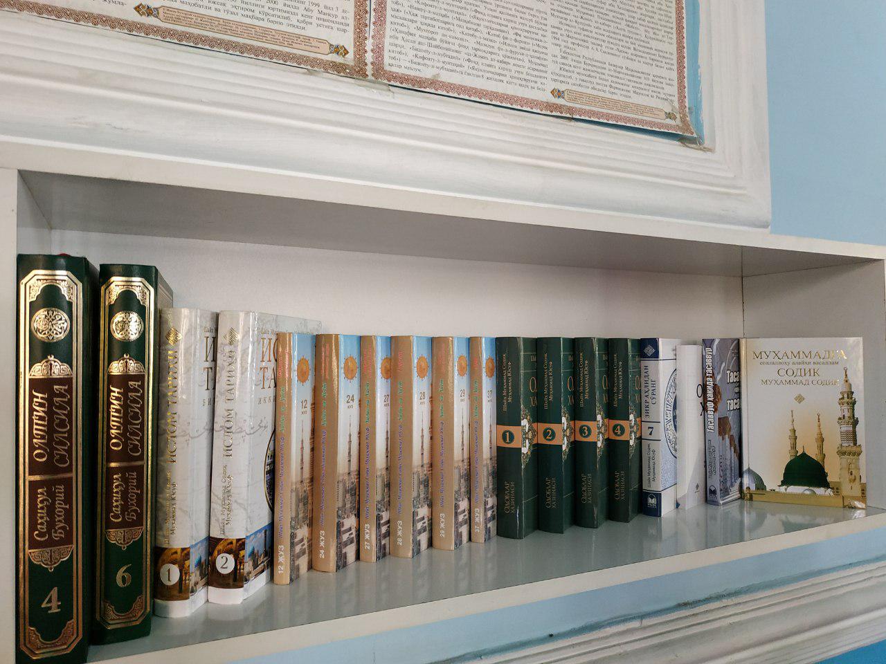 Masjidlarning har biriga “Qur’oni karim”, shayx Muhammad Sodiq Muhammad Yusuf hazratlarining qalamlariga mansub, “Odoblar xazinasi” to‘plami, “Islom tarixi” to‘plami, “Hadis va hayot” kitobidan 7 ta juz, “Muhammad sollallohu alayhi vasallamga sodiq Muhammad sodiq”, “Zikr ahlidan so‘rang” kitobining 7-qismi, “Oltin silsila” 4, 6-juzi, “Iymon«, «Ochiq xat” kitoblari, shu bilan birgalikda masjid ahli uchun kerakli deb hisoblangan “O‘kinma”, “Yengil amallar”, “Hanafiy fiqhidan savol-jaovblar”, “Dunyo va din odobi”, “Til ofatlari”, “Umrning bir lahzasi”, “Baxtli hayot sari”, “G‘iybat o‘zi nima?”, “Muallimi soniy”, “Men ham namoz o‘qiyman”, kabi kitoblar Alloh yo‘lida vaqf mulki qilib berildi.