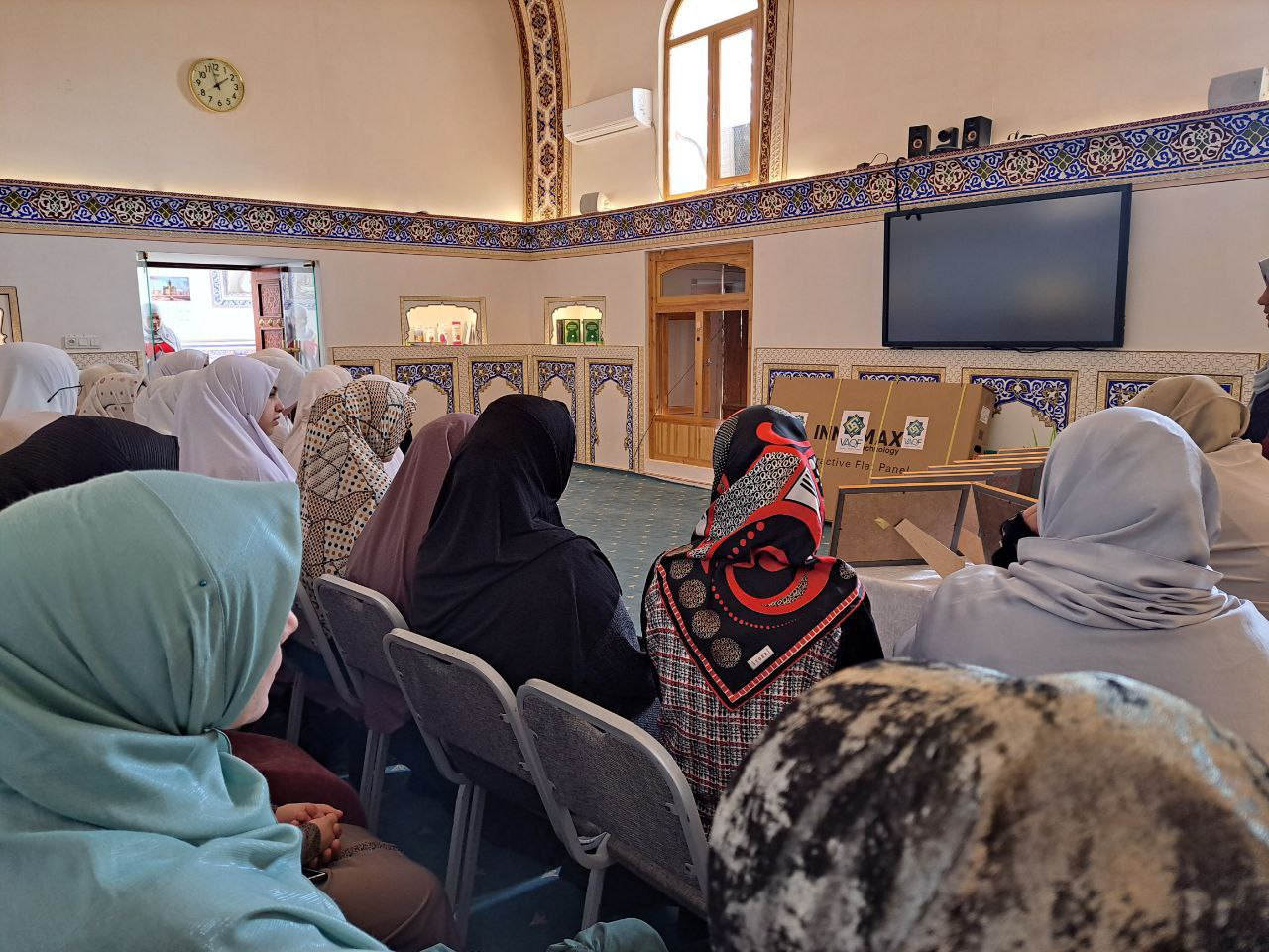 Тадбир якунида Вақф фондининг хайрияси - "SMART" доска мадраса жамоасига совға қилинди ҳамда юртимиз тинчлиги, фан ривожи борасида дуойи хайрлар қилинди.