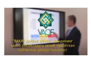 "ВAҚФ" хайрия жамоат фондининг ҳисоб рақамларига келиб тушаётган маблағлар ҳақида маълумот