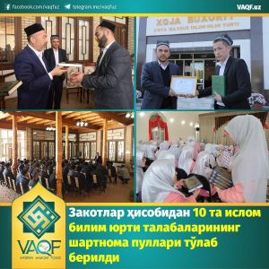 Закотлар ҳисобидан 10 та ислом билим юрти талабаларининг шартнома пуллари тўлаб берилди.