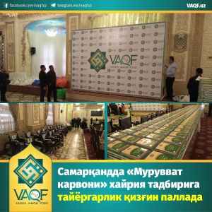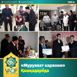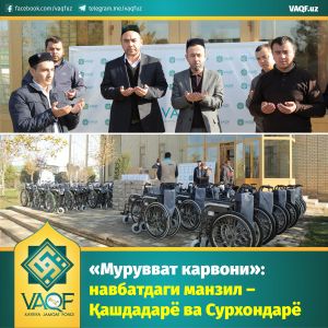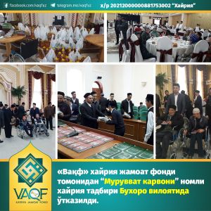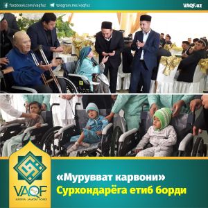 «Вақф» хайрия жамоат фонди томонидан ўтказилаётган “Мурувват карвони” номли хайрия тадбири 10-11 ноябрь, шанба ва якшанба кунлари Бухоро ҳамда Навоий вилоятларида бўлиб ўтади. Бугун юк автомашинасида озиқ-овқат маҳсулотлари, кийим-кечаклар, диний-маърифий китоблар ва бошқа зарурий буюмлар ушбу вилоятлар томон йўлга тушади.