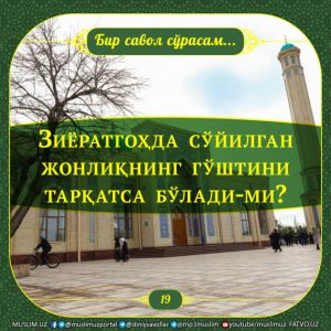Бир савол сўрасам: Зиёратгоҳда сўйилган жонлиқнинг гўштини тарқатса бўлади-ми?