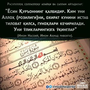 “Рамазон – Куръон ойи” Ёсин сураси фазилатлари