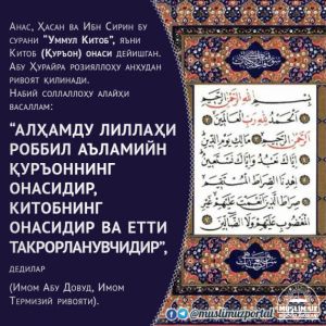 “Рамазон – Куръон ойи” Фотиҳа сураси фазилатлари