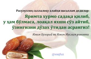 САДАҚА ХАТОЛАРНИ ЎЧИРАДИ ВА У ИЛА АЛЛОҲ ГУНОҲЛАРНИ МАҒФИРАТ ҚИЛАДИ