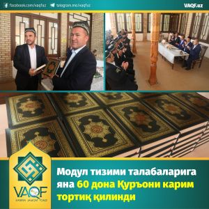 Модул тизими талабаларига яна 60 дона Қуръони карим тортиқ қилинди