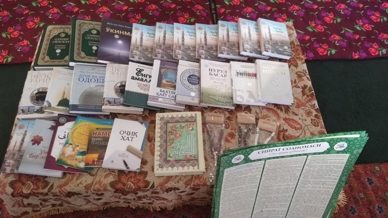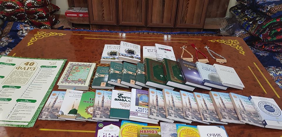 Масжидларнинг ҳар бирига «Қуръони карим», шайх Муҳаммад Содиқ Муҳаммад Юсуф ҳазратларининг қаламларига мансуб, «Одоблар хазинаси» тўплами, «Ислом тарихи» тўплами, «Ҳадис ва ҳаёт» китобидан 9 та жуз, «Муҳаммад соллаллоҳу алайҳи васалламга содиқ Муҳаммад содиқ», «Зикр аҳлидан сўранг» китобининг 5-қисми, «Олтин силсила» 4, 6-жузи, «Иймон«, «Очиқ хат» китоблари, шу билан биргаликда масжид аҳли учун керакли деб ҳисобланган «Ўкинма», «Енгил амаллар», «Ҳанафий фиқҳидан савол-жаовблар», «Дунё ва дин одоби», «Тил офатлари», «Умрнинг бир лаҳзаси», «Бахтли ҳаёт сари», «Ғийбат ўзи нима?», «Ҳазрати Нуҳнинг кемаси ва тўфон воқеаси», «Муаллими соний», «Мен ҳам намоз ўқийман», каби китоблар Аллоҳ йўлида вақф мулки қилиб берилди.