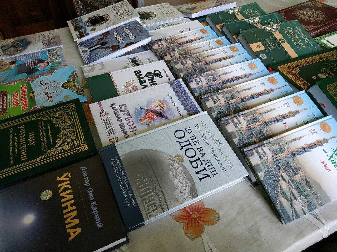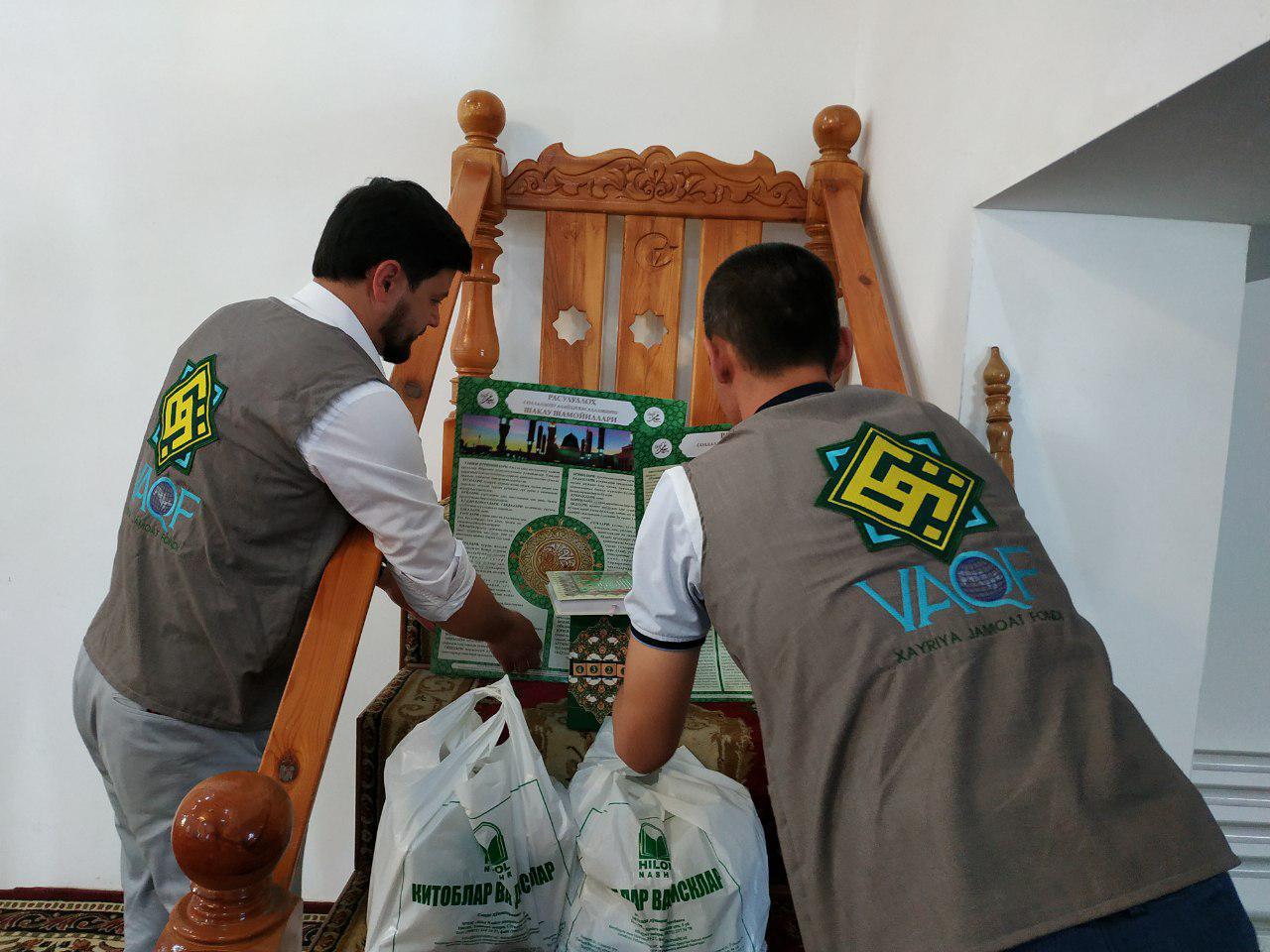 Масжидларнинг ҳар бирига «Қуръони карим», шайх Муҳаммад Содиқ Муҳаммад Юсуф ҳазратларининг қаламларига мансуб, «Одоблар хазинаси» тўплами, «Ислом тарихи» тўплами, «Ҳадис ва ҳаёт» китобидан 7 та жуз, «Муҳаммад соллаллоҳу алайҳи васалламга содиқ Муҳаммад содиқ», «Зикр аҳлидан сўранг» китобининг 7-қисми, «Олтин силсила» 4, 6-жузи, «Иймон«, «Очиқ хат» китоблари, шу билан биргаликда масжид аҳли учун керакли деб ҳисобланган «Ўкинма», «Енгил амаллар», «Ҳанафий фиқҳидан савол-жаовблар», «Дунё ва дин одоби», «Тил офатлари», «Умрнинг бир лаҳзаси», «Бахтли ҳаёт сари», «Ғийбат ўзи нима?», «Муаллими соний», «Мен ҳам намоз ўқийман», каби китоблар Аллоҳ йўлида вақф мулки қилиб берилди.