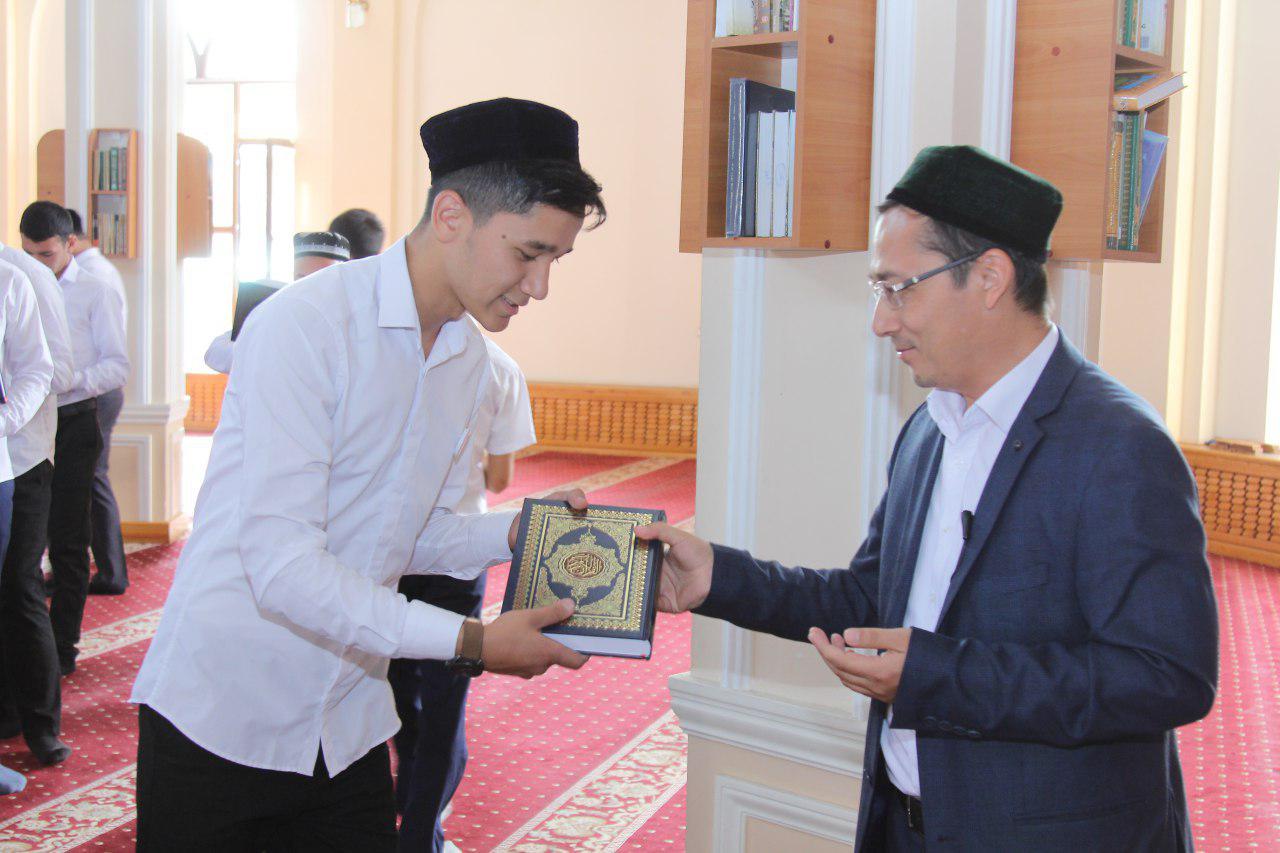 «Масжид ва мадрасалар учун китоб акцияси» доирасида амалга оширилаётган ушбу хайрли тадбирда талабаларга Қуръони карим билан биргаликда ҳар бир гуруҳга бир донадан шайх Муҳаммад Содиқ Муҳаммад Юсуф ҳазратларининг қаламларига мансуб «Тафсири ҳилол» китоби ҳам берилди.