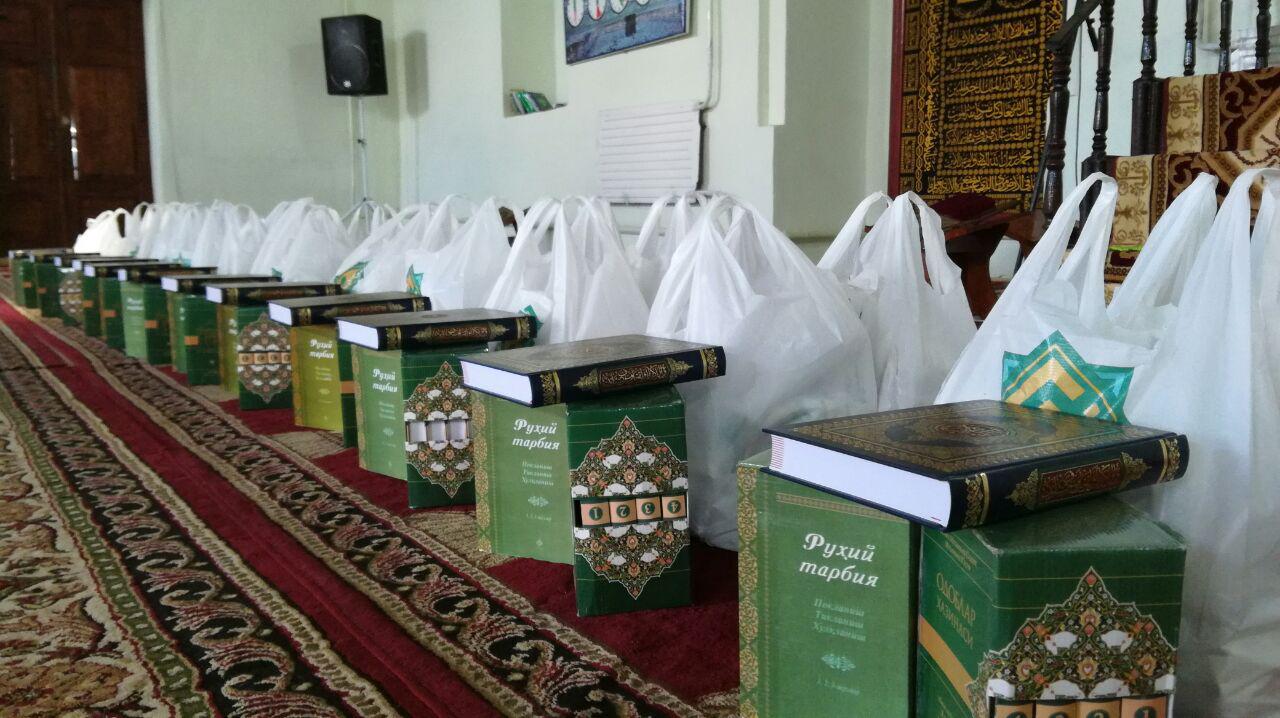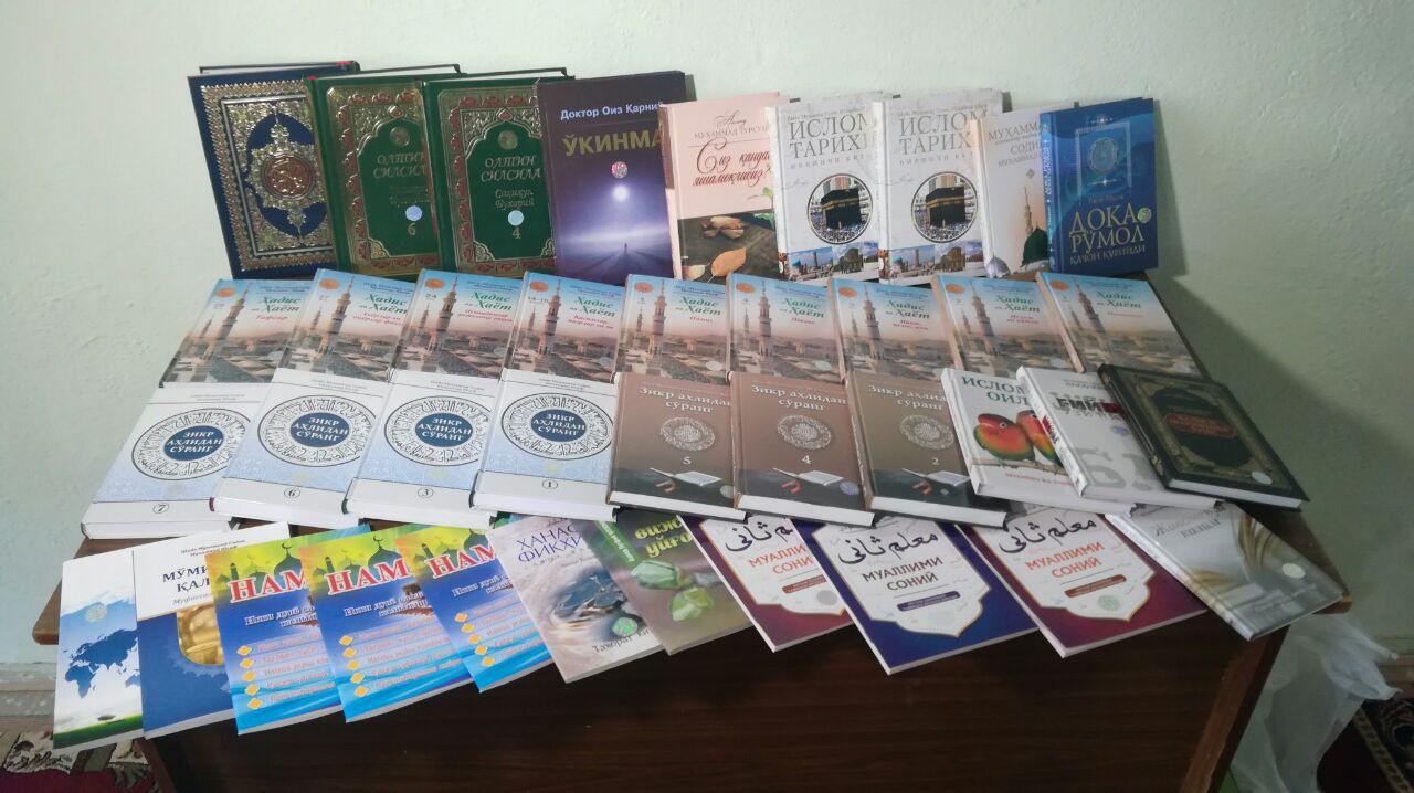 Масжидларнинг ҳар бирига «Қуръони карим», шайх Муҳаммад Содиқ Муҳаммад Юсуф ҳазратларининг қаламларига мансуб, «Одоблар хазинаси» тўплами, «Руҳий тарбия» тўплами, «Ҳадис ва ҳаёт» китобидан 9 та жуз, «Муҳаммад соллаллоҳу алайҳи васалламга содиқ Муҳаммад содиқ», «Зикр аҳлидан сўранг» китобидан 7 та жуз, «Олтин силсила» 4, 6-жузи, «Ислом тарихи», «Мўминнинг қалқони», «Очиқ хат», китоблари, шу билан биргаликда масжид аҳли учун керакли деб ҳисобланган «Жавомеъул калим», « Фақиф имомлар ихтилофида ҳадиси шарифнинг ўрни», «Ўкинма», «Ислом ва олам», «Енгил амаллар», «Ҳанафий фиқҳидан савол-жавоблар», «Ғийбат ўзи нима?», «Исломда оила», «Сиз қандай яшамоқчисиз?», «Дока рўмол қачон қурийди», «Мен ҳам намоз ўқийман», «Муаллими соний», «Бир виждон уйғонур», каби китоблар Аллоҳ йўлида вақф мулки қилиб берилди.