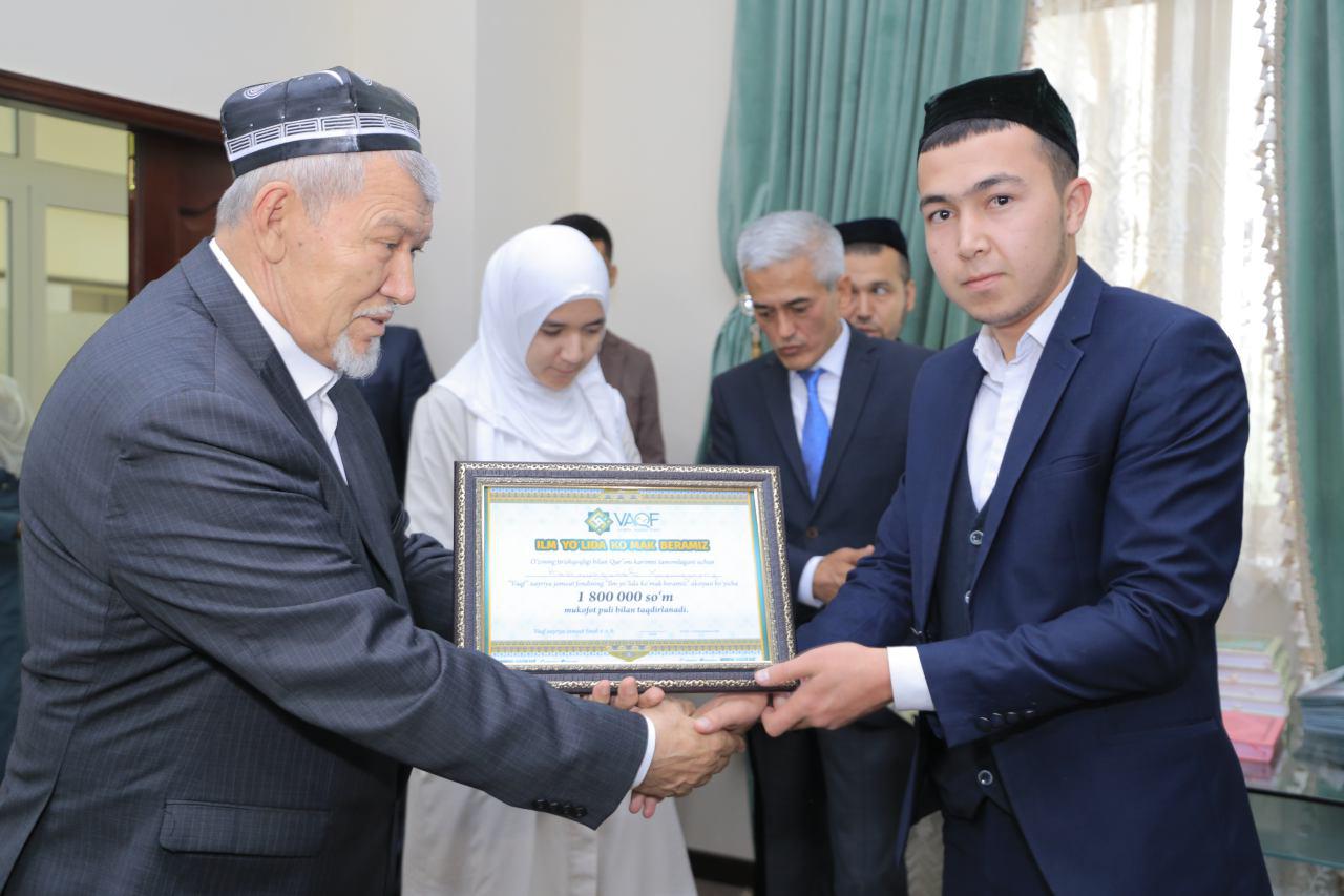 2018 йил 13 октябрь куни ушбу акциянинг биринчи босқичи натижалари бўйича тақдирлаш маросими бўлиб ўтди. Маросимда диний таълим муассасаларининг энг иқтидорли 39 нафар талабаларининг контракт пуллари тўлаб берилиб, ўзининг иқтидори ва қобилияти билан Қуръони каримни тўлиқ ёд олган 15 нафар талаба энг кам иш ҳақининг 10 бараваридан пул мукофотлари билан тақдирланди.